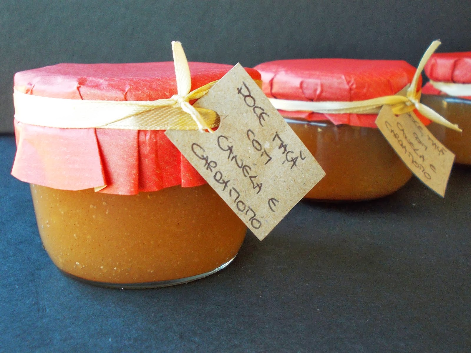 Colocar todos os ingredientes num tacho pequeno. Deixar cozer em lume brando até fazer o ponto estrada (colocar uma pequena quantidade de doce num prato e passar com a ponta da colher e se formar uma estrada é porque está pronto). Retirar as vagens de cardamomo e triturar. Deixar arrefecer um pouco. Colocar o doce em frascos esterilizados, enchendo até cima. Tapar e virar ao contrário uns minutos para criar o vácuo natural.  Bjs a todas/os.